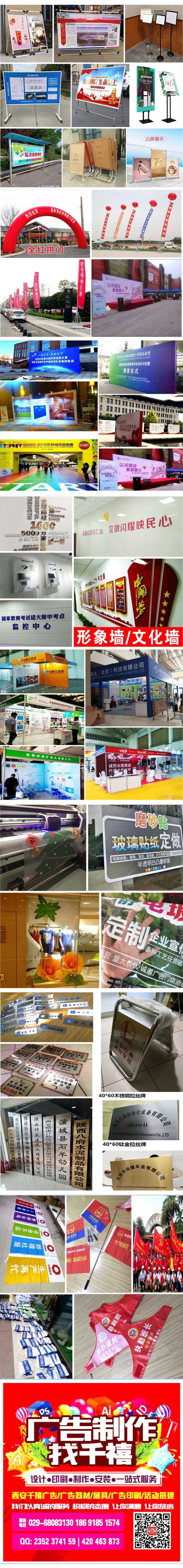 (8) 展架制作: 易拉宝,x展架,拉网展架,l展架,促销台,海报架,注水旗杆,资料架,广告帐篷,挂画架。